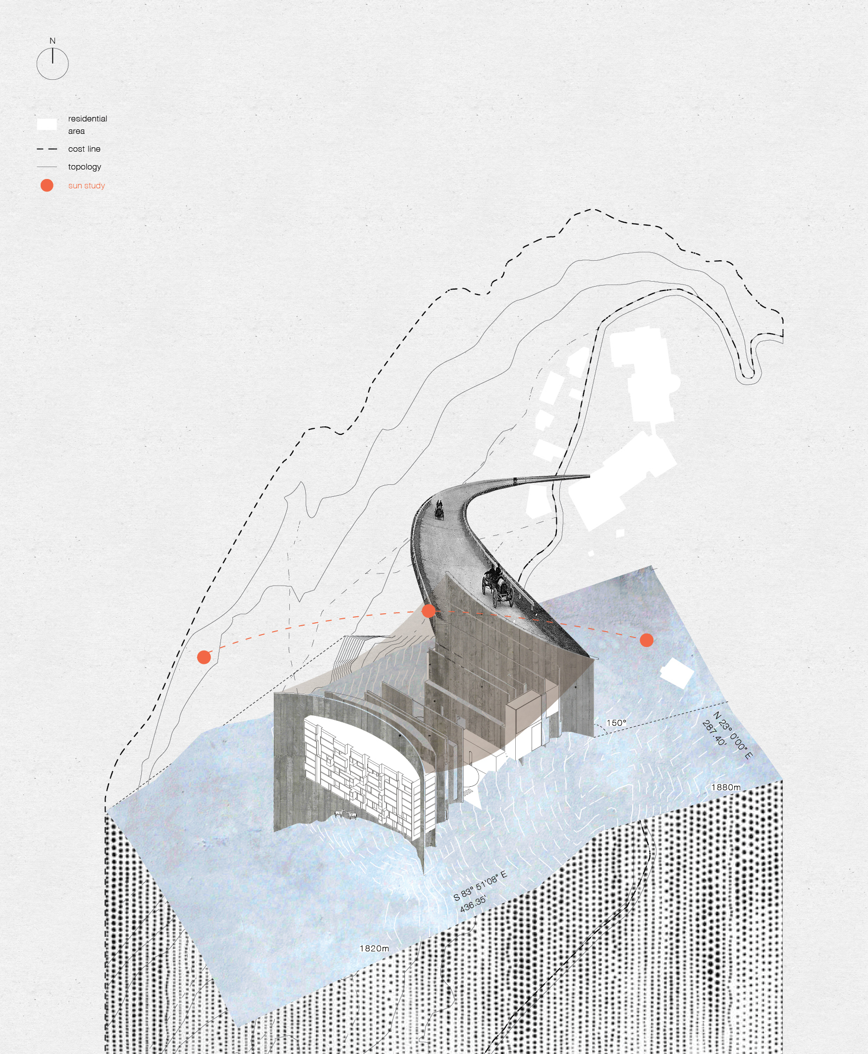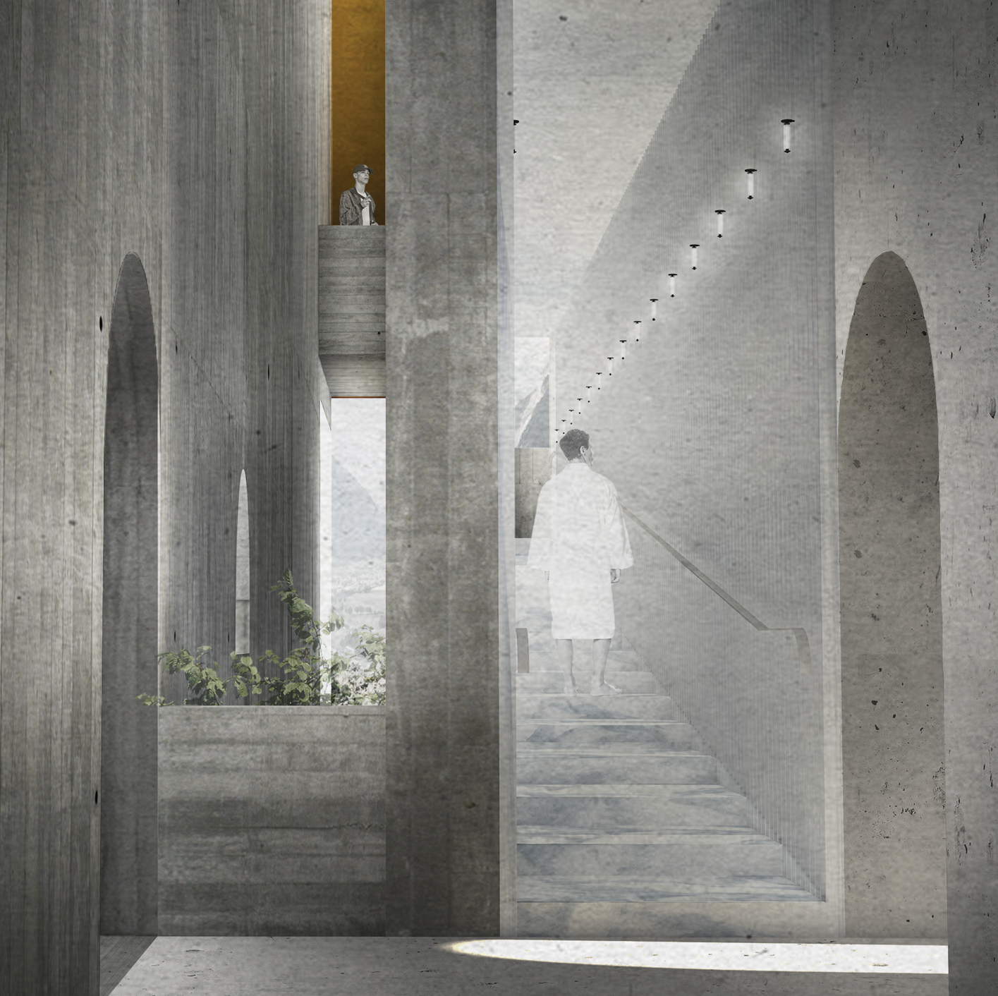 Veil House is an academic hotel project designed to reveal captivating views through immersive architectural spaces, engaging natural senses, raw materiality, and the dynamic moments experienced during spatial transitions.