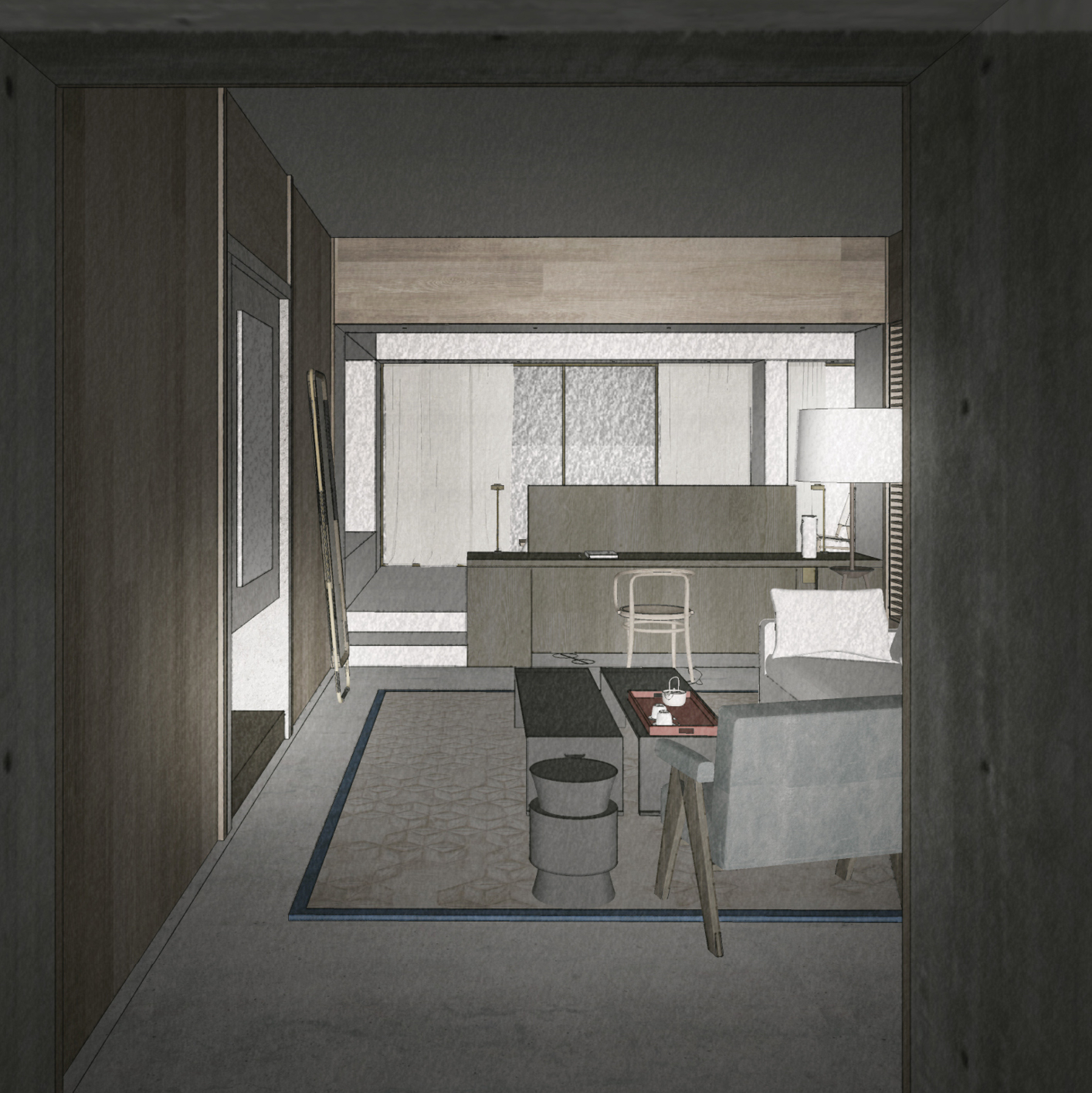 The partitions are arranged with a rhythmic flow, reflecting the proportions of diverse interior spaces. Each space, from entry to end, embodies a gradient of privacy—from public to intimate—aligned with the functions of the objects within. Moments of transition emerge within each spatial layer or at pivotal turning points, subtly hinting at the next layer where new experiences unfold.